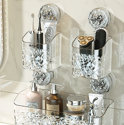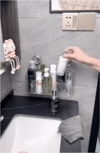 工具不要、吸盤式でどこにでも簡単設置できるスタイリッシュなバスルームシェルフ。